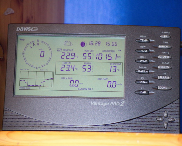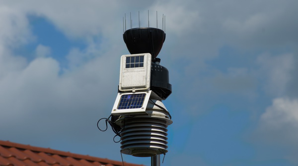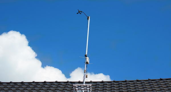 Der Windmesser befindet sich in etwa 10m Höhe. Die ISS (Außeneinheit und Windmesser) werden per Solarpaneel mit Strom versorgt und sind somit autark einsetzbar. Bereits eine Stunde Sonnenlicht pro Tag genügt um die Station mit ausreichend Strom zu versorgen. Der Temperatur und Feuchtigkeitssensor befindet sich strahlungsgeschützt am unteren Ende der ISS.